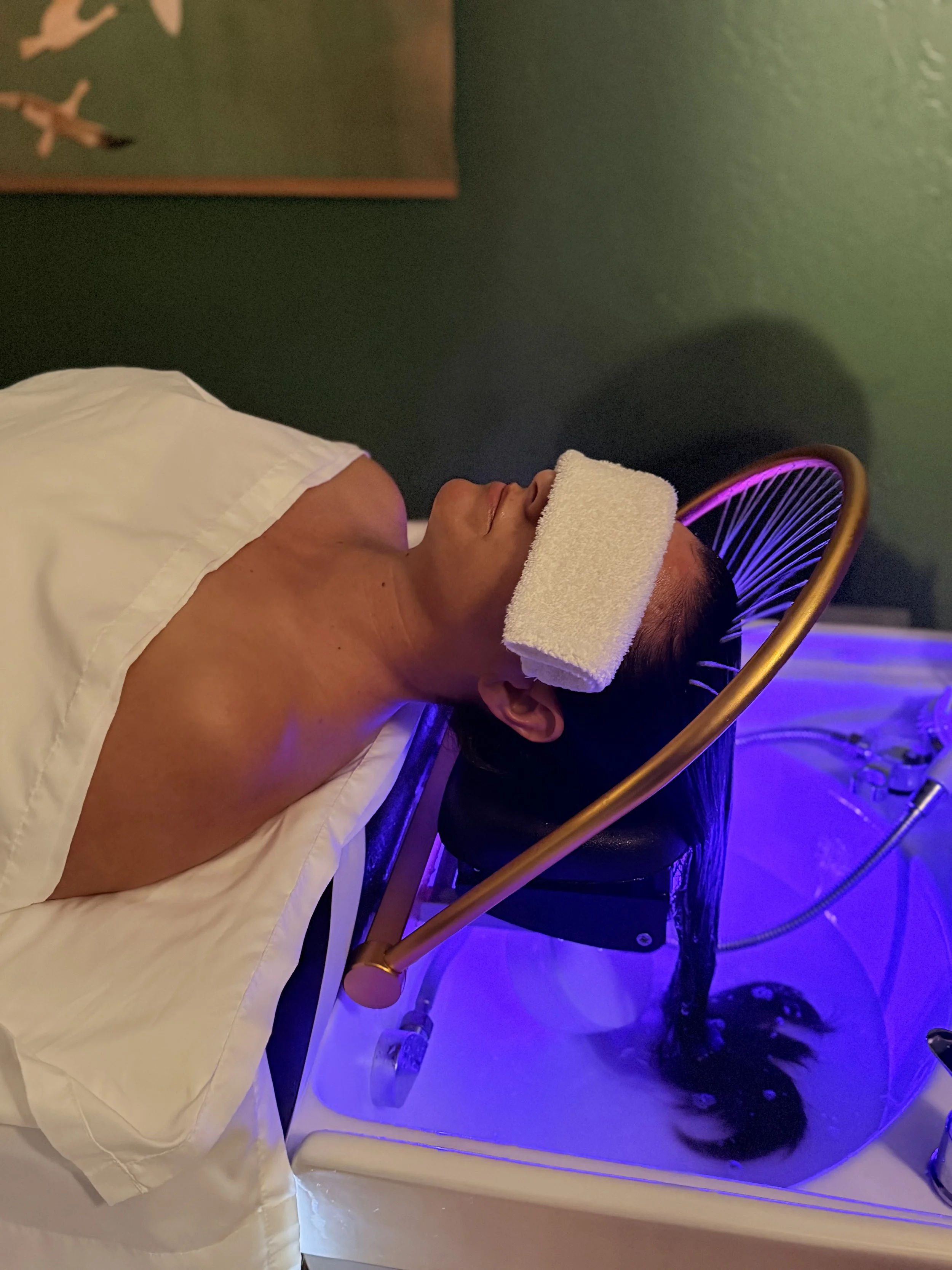 Our Japanese Head Spa is a multi-step, sensory ritual designed to restore balance to the scalp, improve circulation, relieve tension, and nourish the hair from root to tip.